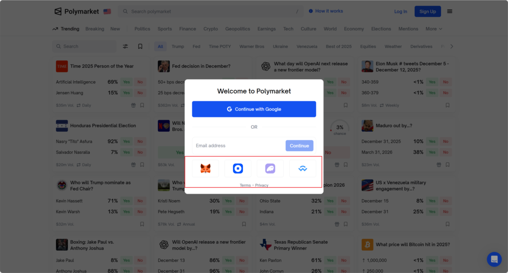 首先,选择一个好的魔法出口,比如日本,反而美国、新加坡不行,原因是Polymarket不支持美国、新加坡等国家。如果你没有魔法,请点击此链接(魔法直达)看看。